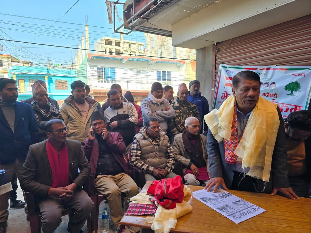 नेपाली कांग्रेस महाेत्तरी जिल्ला समितिले बर्दीबासमा शनिबार आयाेजना गरेकाे कार्यकर्ता भेटघाट कार्यक्रमलाई सम्बाेधन गर्दै उनले त्यसका लागि संगठन निर्माणमा लाग्न आग्रह गरे । केही समय अघि भएकाे उपनिर्वाचनमा यसकाे अभ्यास भइसकेकाे पनि उनको भनाइ थियो ।