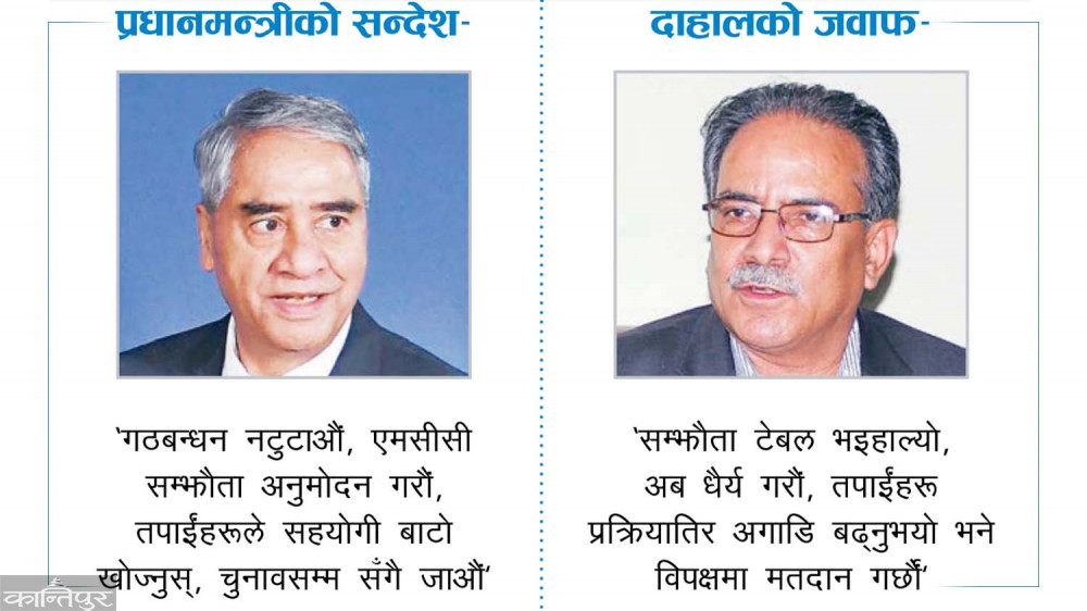 ‘फागुन ५ मा बालकोटमा र मंगलबार बालुवाटारमा भएका कुराकानीले दुई नेताबीच आपसी अविश्वास माझामाझ गर्ने काम भएको छ । यसले नयाँ समीकरण बनाएर अघि बढ्न सकिने ढोका खुलेको छ, तर प्रधानमन्त्री नै कुन बाटो जाने भन्नेबारे निर्णायक मोडमा पुगिसक्नुभएको छैन,’ देउवा निकट एक नेताले भन्छन्, ‘संसद्मा छलफल भएर मतदानमा जाने बेलासम्म एउटा निर्णयमा पुग्न सक्ने अवस्था बन्छ ।’