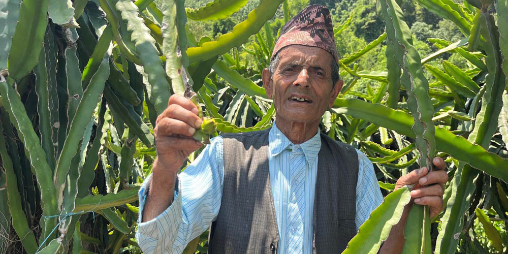 गुल्मी – बडिगाड गाउँँपालिका–५ का ७७ वर्षीय बालकृष्ण अर्याल यतिबेला ड्रागन फ्रुट खेती गरेर वार्षिक रु १० आम्दानी गरेका छन् ।