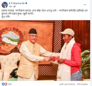 प्रधानमन्त्री ओलीले प्रकाशको नागरिकता बनिसकेकाले अब उनलाई अन्य कुरामा पनि सहज हुने बताएका छन्।