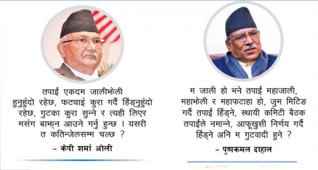 काठमाडौँ – पछिल्लोपटक गत असोज १९ गते नेकपा सचिवालय बैठक बस्यो । मन्त्रिपरिषद् पुनर्गठनका विषयमा नेताहरूबीच मतभेद सुरु भइसकेकाले बैठक त्यति बेला उति लामो हुन सकेन । त्यसयता अध्यक्षद्वय केपी शर्मा ओली र पुष्पकमल दाहालबीच विवादका इँटा थपिँदै गए, नेताहरू टाढिए ।
