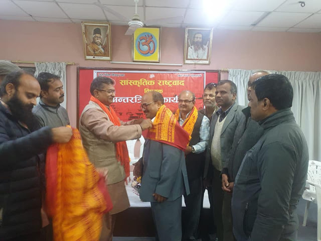 कार्यक्रममा दोसल्ला ओढाई शुभकामना आदान–प्रदान पश्चात विहिपको स्थानीय समिति पुर्नगठन तथा हिन्दू धर्मवालम्बीहरुले मनाउने बिभिन्न चाँडपर्वहरुको विशेषता एवं नेपाललाई पुनः हिन्दू राष्ट्र कायम गराउने रणनीति बारे उपस्थिति अधिकारीगणले मन्तव्य राखेका थिए ।
