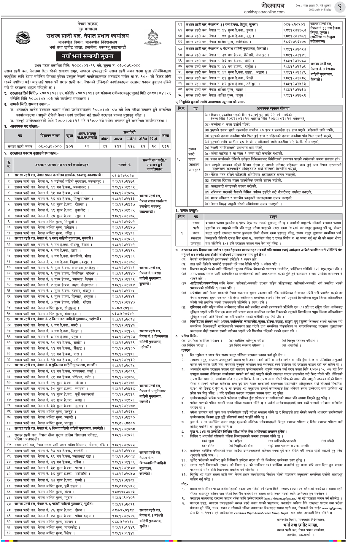 सशस्त्र प्रहरी बल, नेपालमा रिक्त रहेको साधारण समूह, साधारण उपसमूहतर्फ सशस्त्र प्रहरी जवान पदमा खुला प्रतियोगिताद्वारा पदपूर्ति गर्न लागिएको हो।