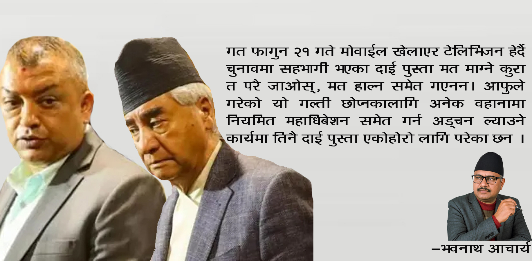 नेपालको राजनीतिक इतिहासमा नेपाली कांग्रेस सधैं लोकतन्त्रको हिमायती दलका रूपमा चिनिँदै आएको छ । जनआन्दोलनदेखि संविधान निर्माणसम्मका महत्वपूर्ण चरणहरूमा कांग्रेसले नेतृत्वदायी भूमिका खेलेको छ । तर पछिल्लो समय पार्टीभित्रको आन्तरिक कलहले भने कांग्रेसको सांगठनिक संरचना र लोकतान्त्रिक अभ्यासमाथिनै गम्भीर प्रश्न उठाएको छ । विशेषगरी कांग्रेसका पुर्व सभापति शेर बहादुर देउवा मार्काका दाई पुस्ता घोषित पन्ध्रौं महाअधिबेशनमा अनुमोदन नहुने त्रासले अदालतको आँगनमा देउसी खेल्दै छन् ।