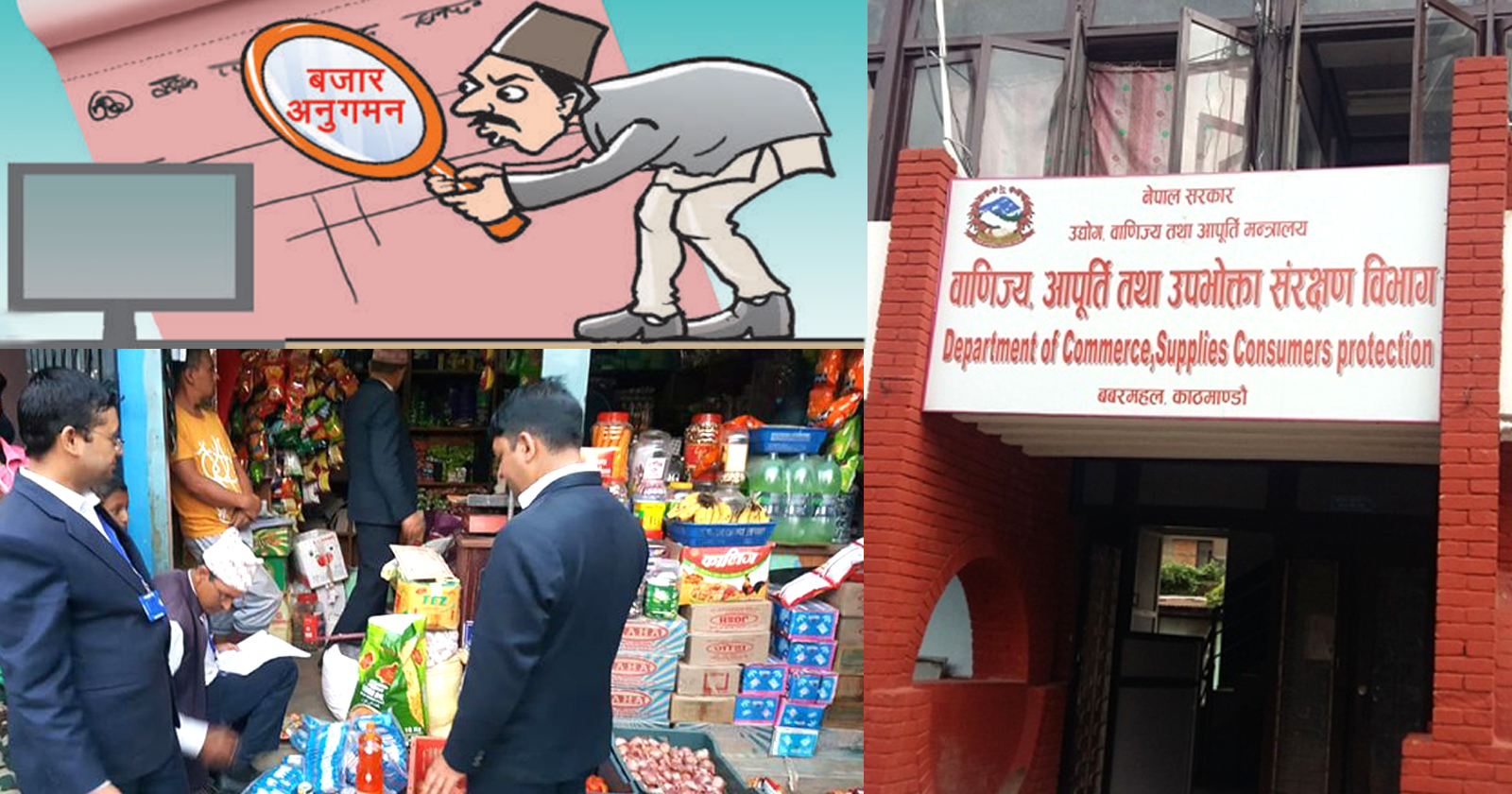 वाणिज्य, आपूर्ति तथा उपभोक्ता संरक्षण विभागबाट दैनिक रुपमा बजार अनुगमनकालागि दलबल सहितको भ्रमण बजारभरि देखिएको छ । दैनिक रुपमा बजार अनुगमनमा जाने विभागका कर्मचारीबाट खासै कारबाही गर्ने र कारबाही गरेको भने भेटिएको छैन । एक दुई कम्पनीमाथी केही रुपैयाँ जरिवाना गरेको भन्दै सार्वजनिक गरेपनि अधिकाशं व्यवसायीहरुलाई सामान्य निर्देशन दिएको भन्दै टिप्पणी उठाएर बजार अनुगनको नाममा भत्ता पचाउने कार्यभन्दा अरु उपलव्ध हुन सकेको छैन ।
