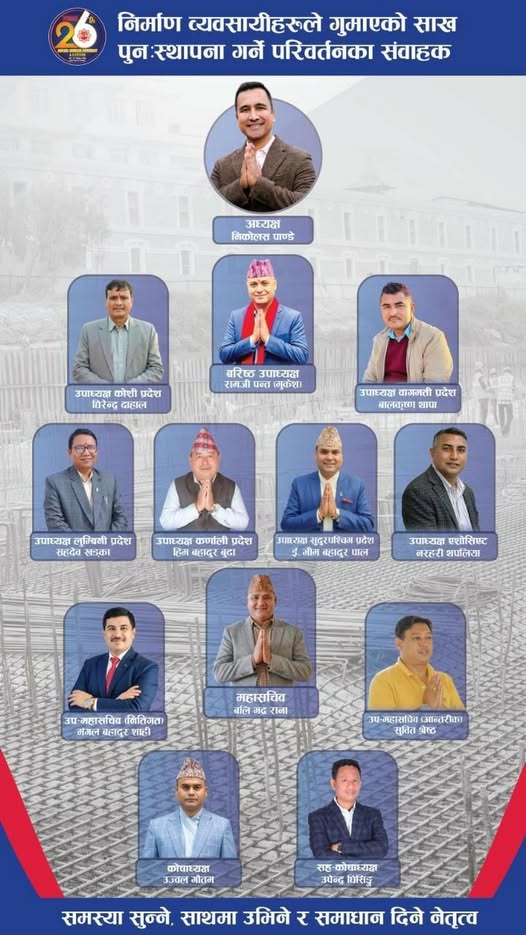 पाण्डे अघिल्लो निर्वाचनमा अध्यक्षमा रवि सिंहसँग पराजित भएका थिए । अध्यक्षका आकांक्षी लामा पीएस कन्स्ट्रक्सन कम्पनीका प्रबन्धक निर्देशक हुन भने पाण्डे निर्माण व्यवसायीका साथै युवा उद्यमी पनि हुन् ।
