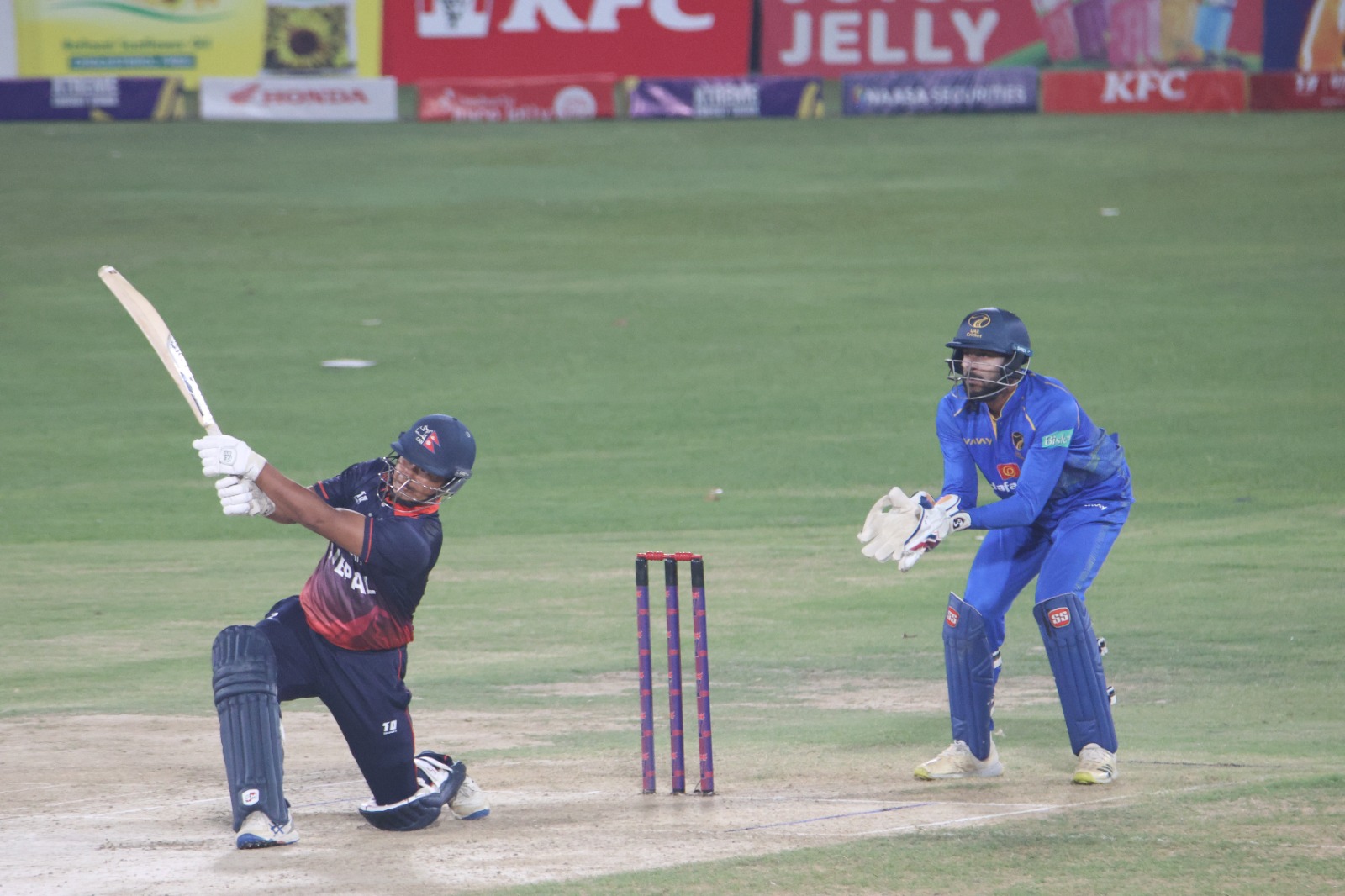 काठमाडौँ । संयुक्त अरब इमिरेट्स (युएई) लाई आठ विकेटले पराजित गर्दै नेपाल विजयी भएको छ ।कीर्तिपुरस्थित त्रिवि मैदानमा यूएईले नेपाललाई जितको लागि १२९ रनको लक्ष्य दिएको थियो । जवाफमा नेपालले १५.५ ओभरमै मात्र २ विकेट गुमाएर लक्ष्य पूरा गर्यो ।