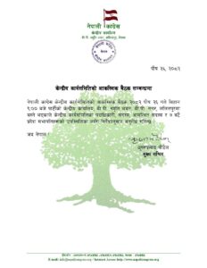 काठमाडौँ । नेपाली कांग्रेसले आज बिहान ९ बजे पार्टीको केन्द्रीय कार्यालय, बीपी स्मृति भवनमा आकस्मिक केन्द्रीय कार्यसमितिको बैठक बोलाएको छ।