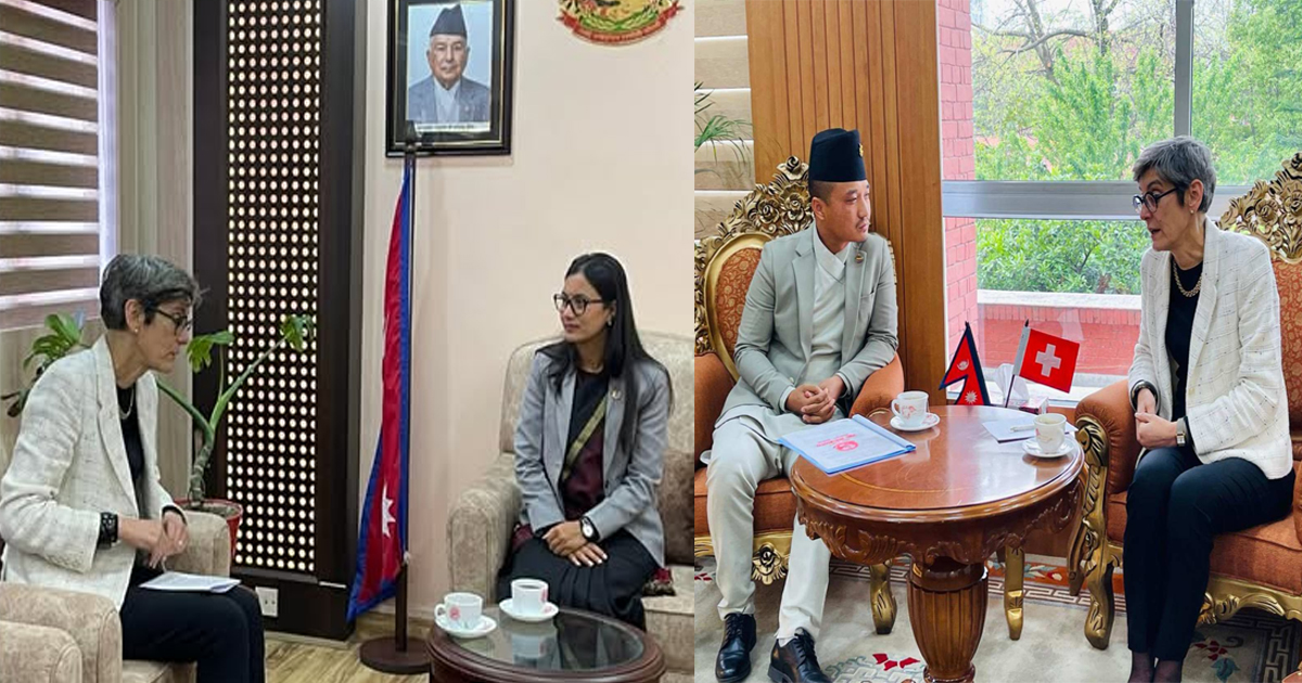 यसपटक मन्त्रीहरूलाई स्पष्ट निर्देशन दिइएको भनिए पनि आजै कानुनमन्त्री र गृहमन्त्रीसँग स्विटजरल्याण्डकी राजदूतले छुट्टै भेटेकी हुन् । राजदूत ड्यानियल मेउलीले कानुन कानुन, न्याय तथा संसदीय व्यवस्थामन्त्री सोबिता गौतम र गृहमन्त्री सुधन गुरुङसँग भेट गर्दै दुई मुलुकबीच कायम रहेको कूटनीतिक सम्बन्धको ७० औं वार्षिकोत्सवका कार्यक्रम सम्बन्धमा केन्द्रित रहेको बताइएको छ । जबकी उनै राजदूतले हिजो परराष्ट्रमन्त्री शिशिर खनालसँग भेटेकी थिइन् ।