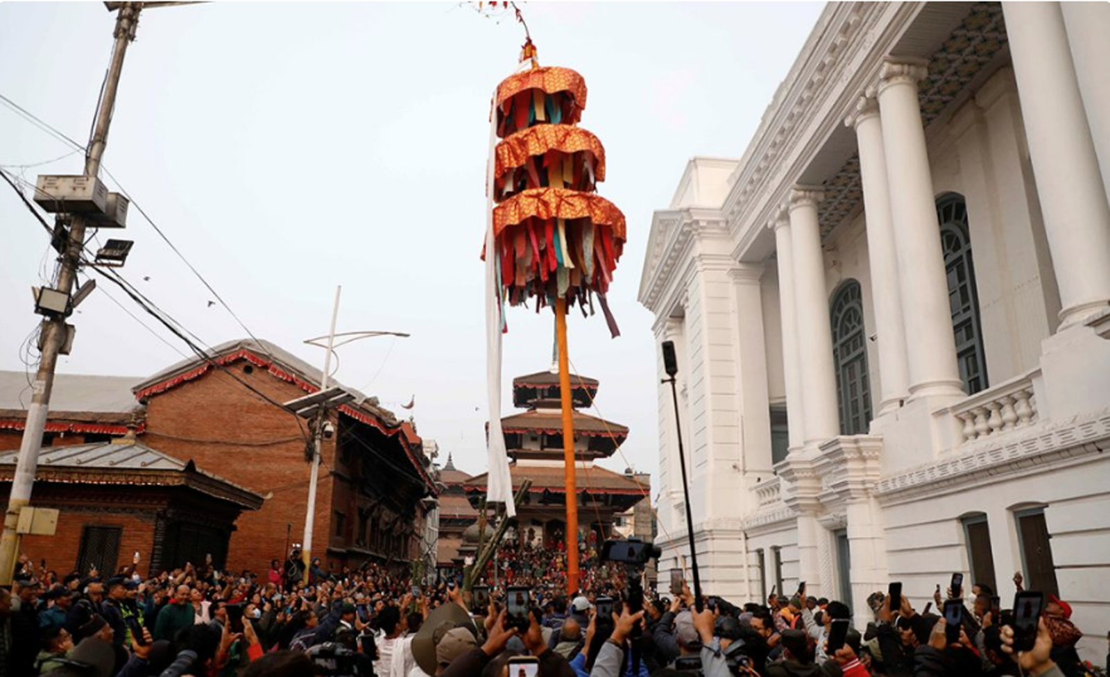 बसन्तपुरमा तीनतले चीर ठड्याइए संगै रङ्गको पर्व होली औपचारिक रुपमा सुरु