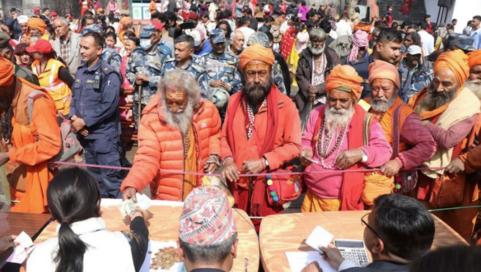काठमाडौँ । गुठी संस्थान र पशुपति क्षेत्र विकास कोषले महाशिवरात्रिका अवसरमा पशुपतिनाथको पूजाआराधना एवं दर्शन गर्न आएका नागाबाबासहितका साधुसन्तलाई बिदाइ सुरु गरेको छ । बिहान ११ बजेदेखि पशुपतिनाथको मन्दिरअघिको पश्चिम ढोकामा बिदाइ सुरु गरिएको हो । नेपाल र भारतका विभिन्न अखडाबाट आएका नागा बाबासहितका साधुसन्तलाई रु ५५१ देखि रु ११ हजारसम्म दक्षिणा दिएर बिदाइ गर्न लागिएको संस्थानका प्रवक्ता जनक पोखरेलले जानकारी दिए ।