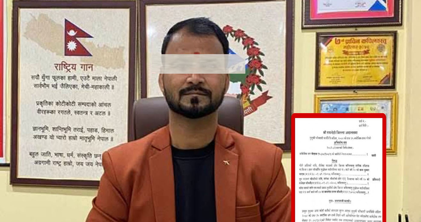 काठमाडौं । कपिलवस्तुको शुद्धोधन गाउँपालिका अध्यक्ष कमलेश शरण चौधरीसहित तीन जनामाथि सामूहिक बलात्कारको मुद्दा दर्ता भएको छ । जिल्ला सरकारी वकिल कार्यालय रुपन्देहीले नाम परिर्वतित ‘भैरहवा १५’ लाई अध्यक्ष चौधरीसहितले सामुहिक बलात्कार गरेको मुद्दा दर्ता गरेको हो । मुद्दा दर्तासँगै गाउँपालिका अध्यक्ष चौधरीको पद धरापमा परेको छ । तर उनले आफू दोषी नरहेकाले कानूनी लडाइँमा जाने बताएका छन् ।
