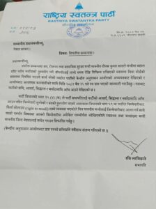 पत्रमा भनिएको थियो, ‘श्रम, रोजगार तथा सामाजिक सुरक्षा मन्त्री माननीय दीपक कुमार साहले मन्त्रीमा बहाल रहँदा पदीय मर्यादाको दुरुपयोग गरी श्रीमतीलाई लामो समय देखि निष्क्रिय राखिएको स्वास्थ्य बिमा बोर्डको सदस्यमा नियमित गराउने कार्य गरेको व्यहोरा पार्टीको केन्द्रीय अनुशासन आयोगको अध्ययनबाट देखिएको र आयोगबाट आवश्यक कारवाहीको लागि मिति २०८२ चैत्र २५ गते पत्र प्राप्त भएको जानकारी गराउँदछु ।