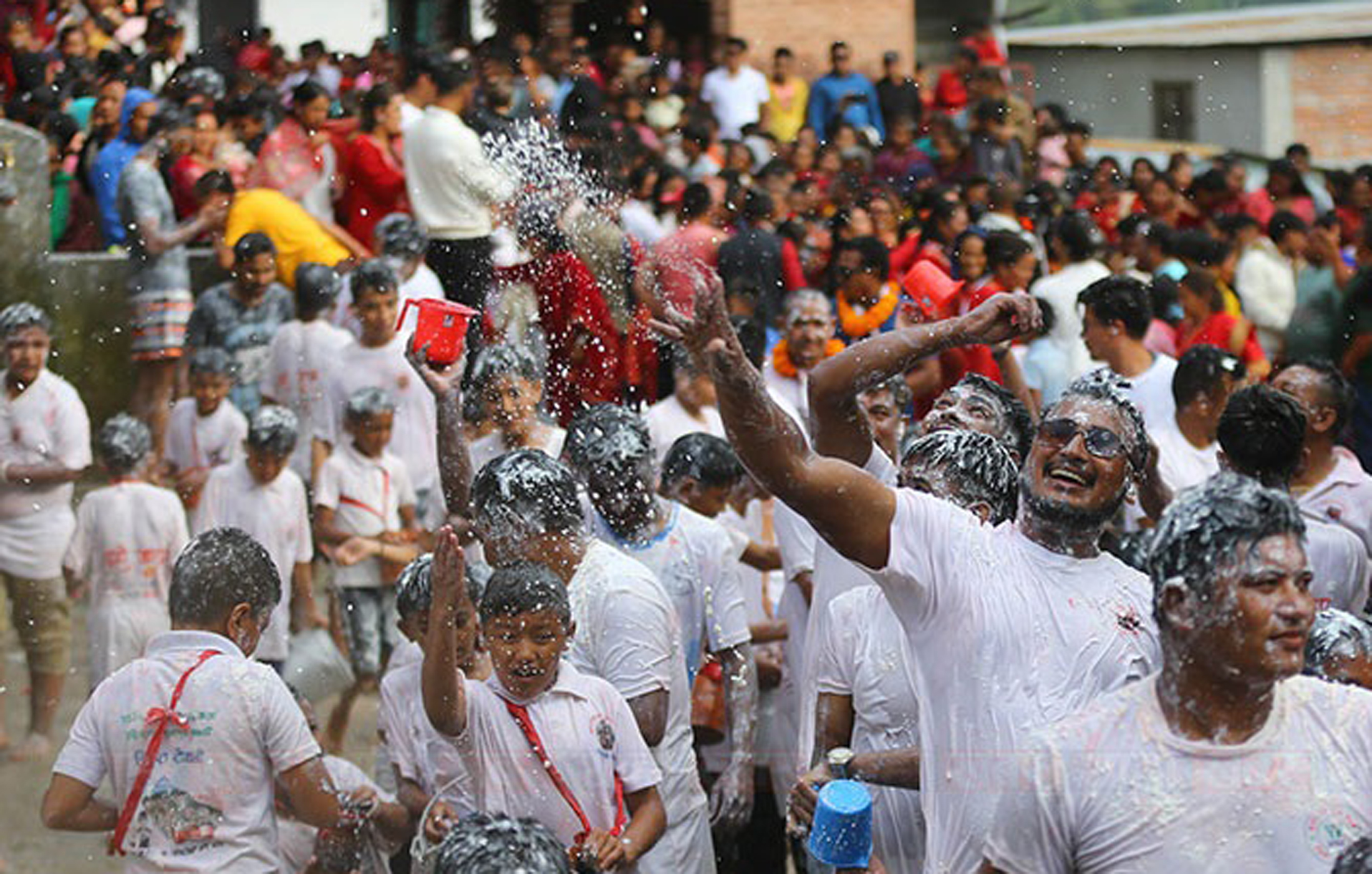 काठमाडौं – सिन्धुपाल्चोकको त्रिपुरासुन्दरी गाउँपालिका- ५ तौथली बजारमा शुक्रबार दही छ्याप्दै ‘तौथली दही जात्रा’ मनाइएको छ ।